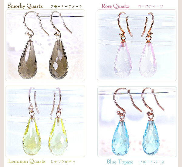 ピアスパーツ トップ(チャーム)のみの販売 K10(10金) 金具なし ローズクォーツピアスパーツ ピンクゴールド PG スモーキークォーツブルートパーズ レモンクォーツ kp-p5 パワーストーン ジュエリー 天然石 宝石 kp179 (TGS2) お返し