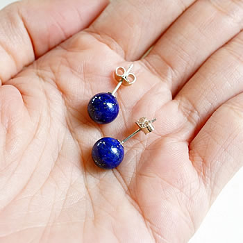 ■数量限定 ラピスラズリのSV925ポストピアス(両耳ペア) ラウンド8mm 普段使いにさりげなく身につけられるラピスラズリのピアスです。