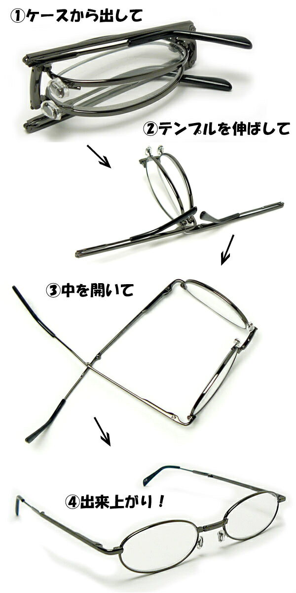 ○コンパクトに収納できる折りたたみ式老眼鏡です。